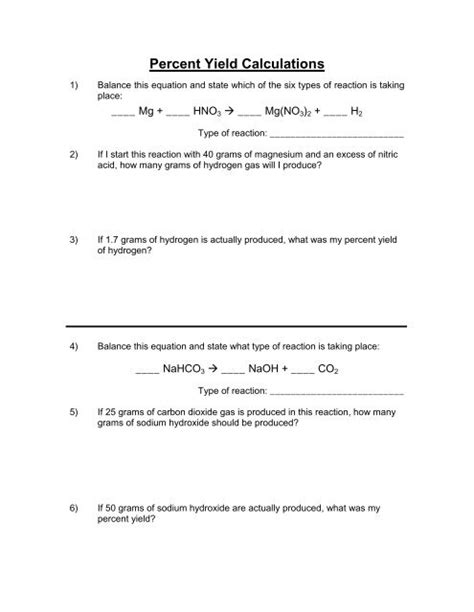 Download Theoretical Percent Yield Worksheet Answers PDF